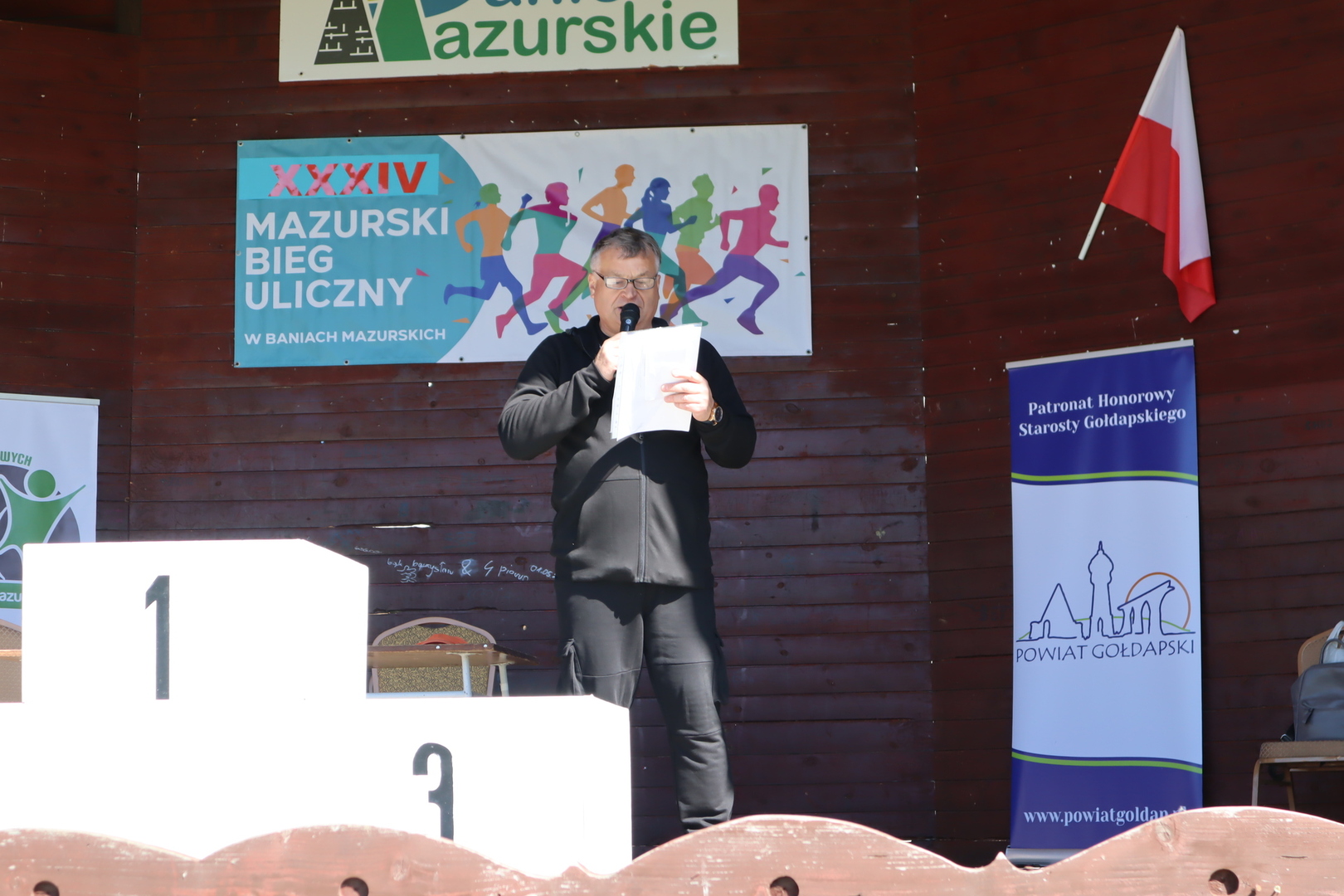 Organizację „XXXIV Mazurskiego Biegu Ulicznego” dofinansował Urząd Gminy w Baniach Mazurskich i Starostwo Powiatowe w Gołdapi.